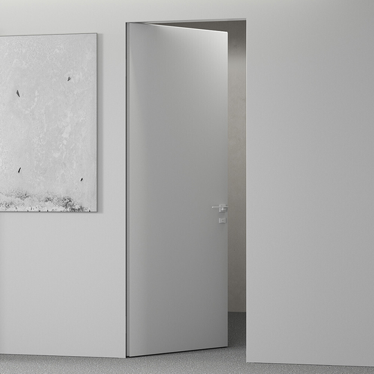 Каркасная дверь Hausdoors с зеркалом на лицевой части, с другой стороны под покраску, открывание наружу. Полотна изготавливаются с фабричной фрезеровкой под замок 196 мм и петли AGB Eclipse 2.2. Со стороны зеркала предусмотрено одно или два отверстия - под ручку и фиксатор/цилиндр. Рекомендуется к установке ручка на круглой розетке диаметром не менее 52 мм.