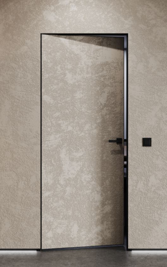 Каркасная дверь Hausdoors под покраску на лицевой части, зеркало с другой стороны, открывание внутрь. Полотна изготавливаются с фабричной фрезеровкой под замок 196 мм и петли AGB Eclipse 2.2. Со стороны зеркала предусмотрено одно или два отверстия - под ручку и фиксатор/цилиндр. Рекомендуется к установке ручка на круглой розетке диаметром не менее 52 мм.
