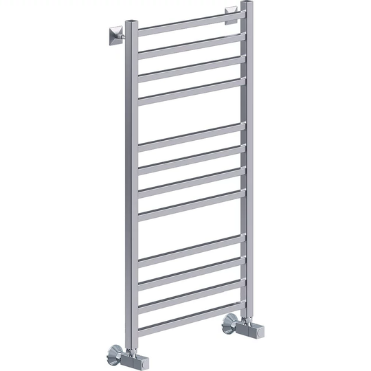 Сечение труб: горизонтальные - квадратное; вертикальные - прямоугольное; Подключение к системе водоснабжения; Универсальное подключение; Телескопический держатель; Материал: нержавеющая сталь; Теплоотдача: 50х60 - 333, 50х80 - 433, 50х100 - 566, 50х120 - 698; Площадь обогрева, м3: 50х60 - 8, 50х80 - 11, 50х100 - 14, 50х120 - 17.