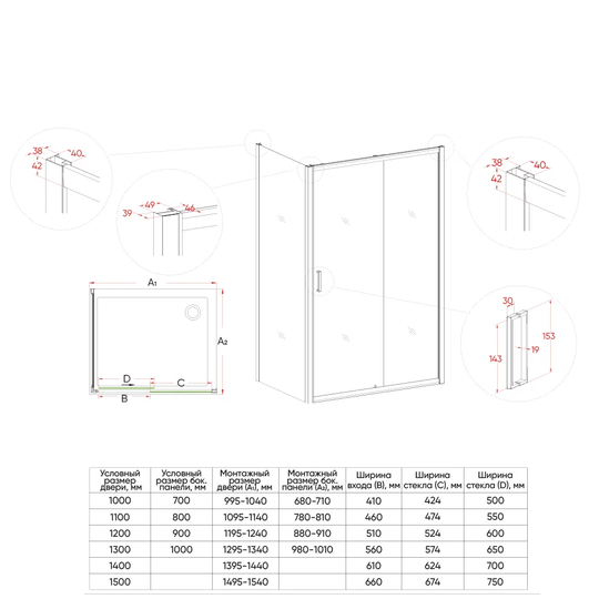 - Данная модель состоит из раздвижной двери VN-40B и боковой панели KP-01B