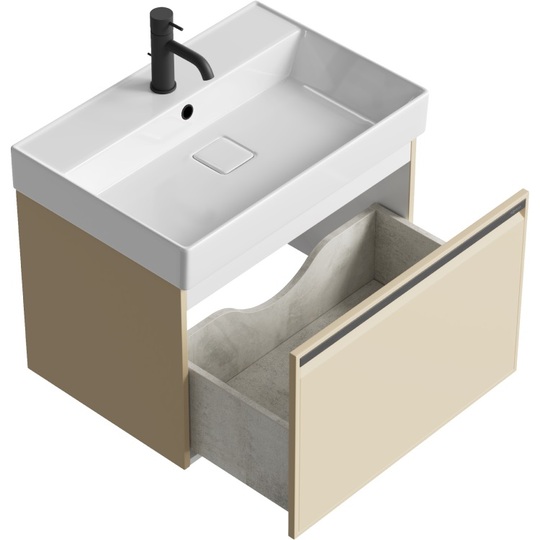 - Тумба Aqwella Pure 66 цвет "капучино светлый" с керамической раковиной Вилис 65.