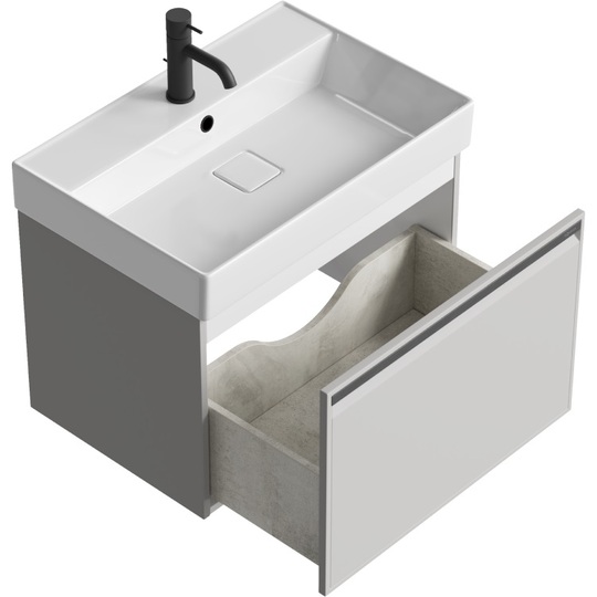 - Тумба Aqwella Pure 66 цвет "серый туман" с керамической раковиной Вилис 65.