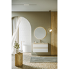 Созданная в стиле софт-минимализма, коллекция Vento отличается мягкой геометрией и визуальной тишиной. Скругленные фасады окрашены матовой краской, также они выполняют функцию скрытых ручек. Древесный корпус из ЛДСП в оттенке светлой акации. Тумбы Vento оснащены умывальниками Malaga из литьевого мрамора, сочетающими четкую геометрию с мягкой пластикой линий. Глубокая практичная чаша обеспечивает комфортность в использовании, а декоративная заглушка в сливной зоне сохраняет чистоту поверхности и архитектурную строгость. Внутреннее пространство продумано до мелочей: дно ящиков выполнено в цвет корпуса, а в верхний ящик установлена система организации внутреннего пространства в виде трех перегородок из ЛДСП.
