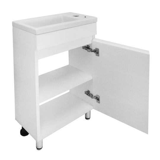 Тумба Эстима 40Н оснащена дверцей, за которой спрятана полочка. Тумба установлена на хромированные ножки. Корпус изготовлен из ЛДСП, фасады МДФ толщиной 16 мм. Корпус и фасады производства Kronospan. Бока и фасады крашеные итальянской эмалью. Тумба имеет как левую, так и правую ориентацию.
