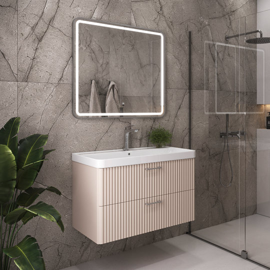 Тумба Comforty Ангара 90П оснащена двумя выдвижными ящиками с системой плавного закрывания. Фрезеровка фасадов выполнена в дорической форме. Внутренние детали тумбы выполнены из влагостойкого ЛДСП. Металлические ручки скобы под естественный хват цвета "жемчужный никель". Тумба подготовлена для подключения водоснабжения сзади и снизу.