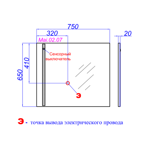 Светодиодная подсветка на зеркале включается с помощью сенсорного выключателя. Само зеркало может крепиться как с вертикальным, так и с горизонтальным положением подсветки. Навесной шкафчик приобретается отдельно.