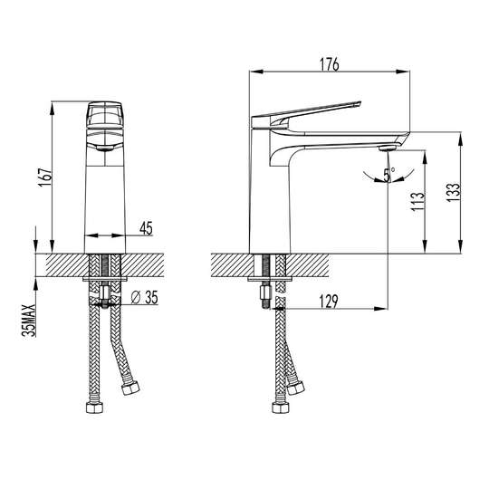 с системой быстрого монтажа, гибкая подводка 50 см, аэратор с изменяемым углом